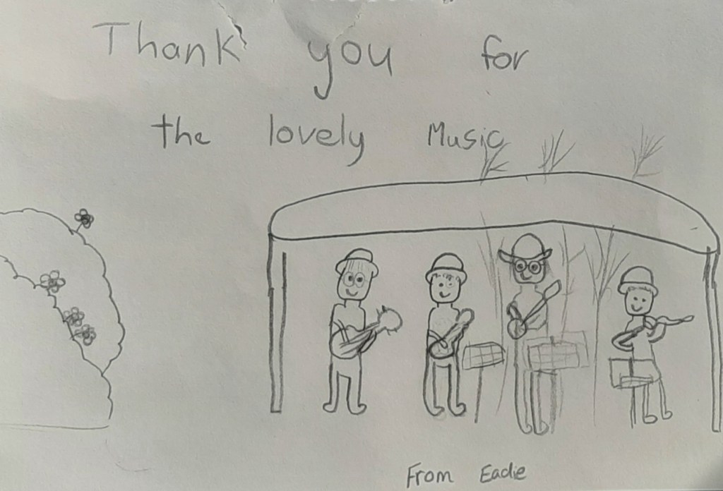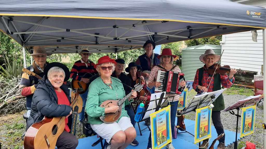 On Saturday Dec 10 2022 we had a wonderful time playing at the annual All Saints Christmas Market in Hobart. The weather was kind and we even had a portrait done by a young artist!